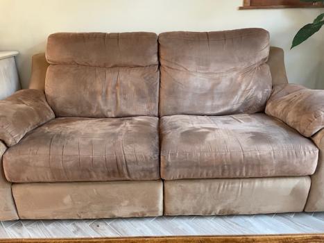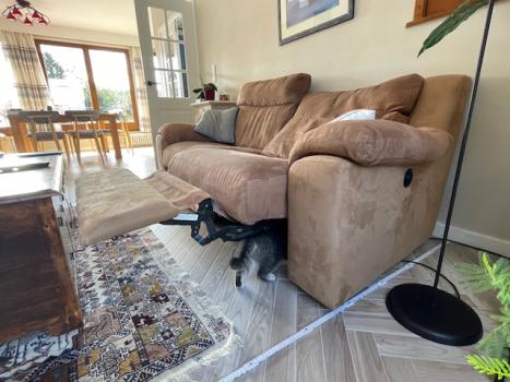 Canapés Château d'Ax bicolores : 2 places (160x90) et 3 places (190x90) avec relax électrique à donner.