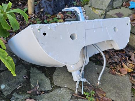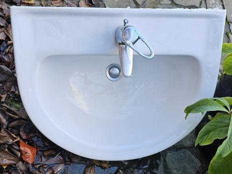 Grand lavabo avec robinetterie. L61, P47, H23 cm.